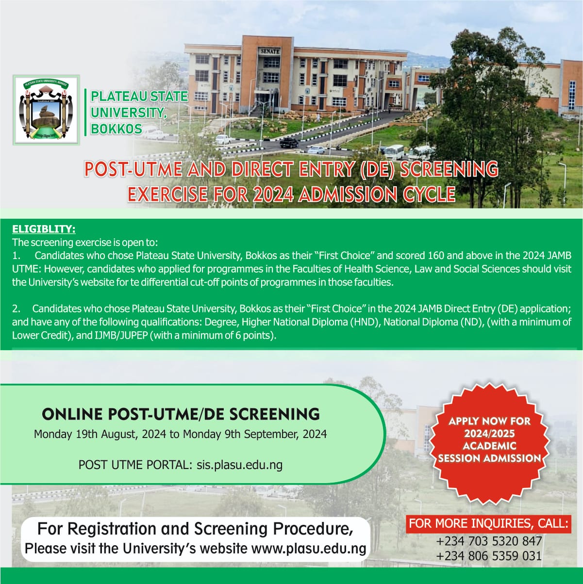 POST-UTME AND DIRECT ENTRY (DE) SCREENING EXERCISE FOR 2025 ADMISSION CYCLE