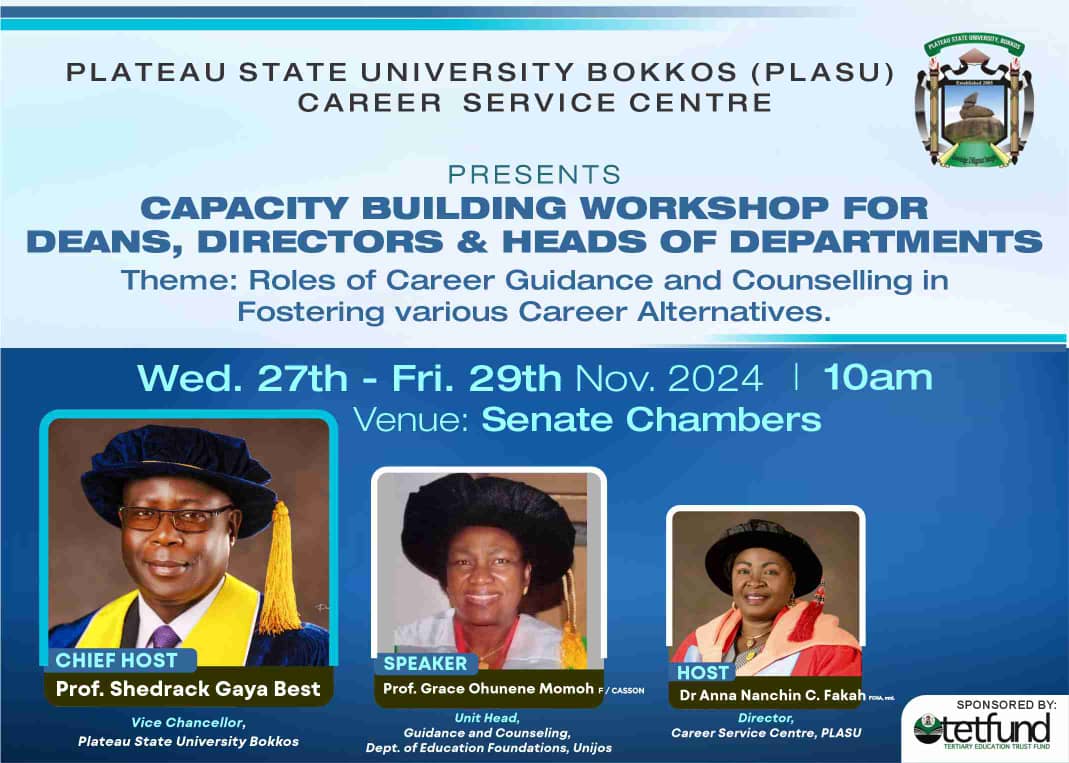 PLATEAU STATE UNIVERSITY, BOKKOS (PLASU)CAREER SERVICE CENTRE PresentsCAPACITY BUILDING WORKSHOP FOR DEANS, DIRECTORS AND